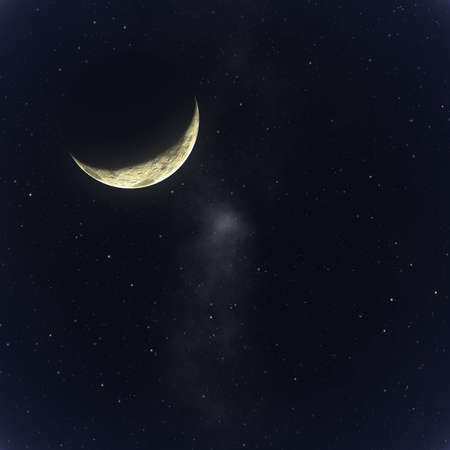 Night sky with stars and milky way. The moon in the night sky