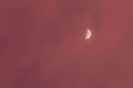 Half Moon and fog on the night sky.