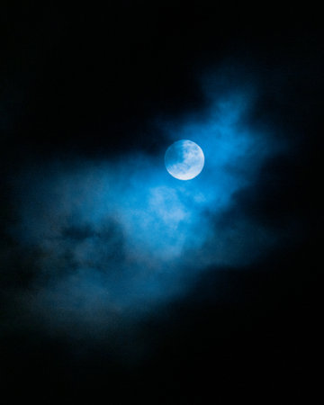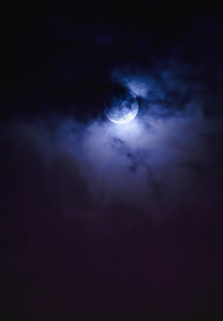 Blue moon light on a dark, gloomy and foggy night. High quality photo