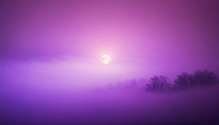A purple sky with a blurred moon during a bright sunset