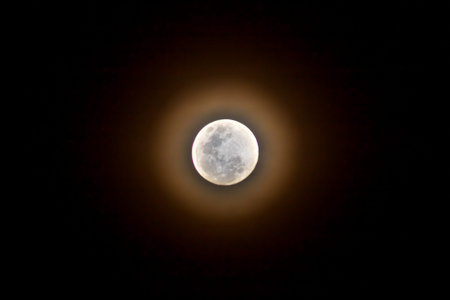 Full moon surrounded by a glowing misty halo
