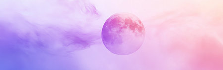 A mesmerizing twilight sky displays a pastel lavender to pink gradient, with a mystical orb floating amidst soft, wispy clouds. The tranquil scene evokes a sense of wonder and calmness.