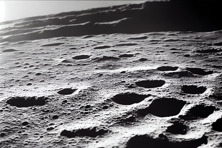 Majestic lunar terrain displays intricate craters and varied textures, as shadows play across the surface in a realm of silence and cosmic beauty. This surreal, desolate environment invites wonder.