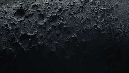Detailed view of cratered moon surface with rough texture, highlighting celestial formation, geology and space exploration.