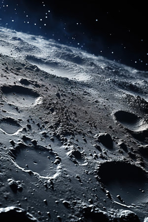 Detailed view of cratered moon surface with rough texture, highlighting celestial formation, geology and space exploration.