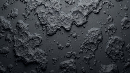 A close-up view reveals a textured black surface featuring intricate natural patterns. Soft light casts shadows across the surface, enhancing its depth and revealing the unique qualities of the material.