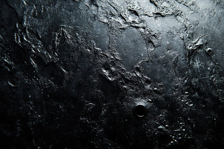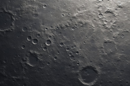Detailed view of cratered moon surface with rough texture, highlighting celestial formation, geology and space exploration.