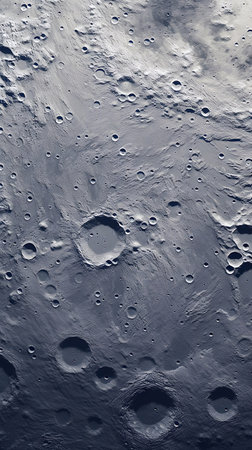 Abstract moon surface with large craters, photorealistic detail, high-res view from space.