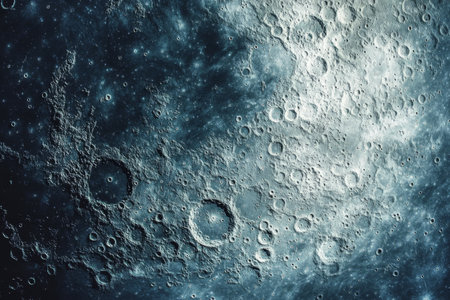 Exploring the textured surface of moon craters under a starry sky