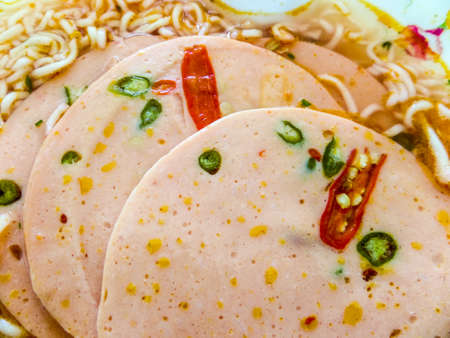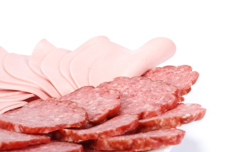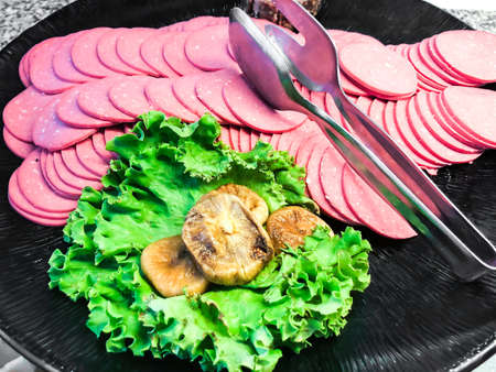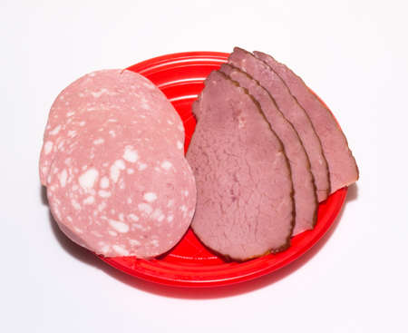 The meat and boiled sausage cut with slices