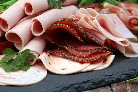 Big Slices of meat breakfast appetizer closeup