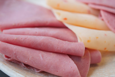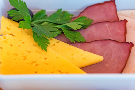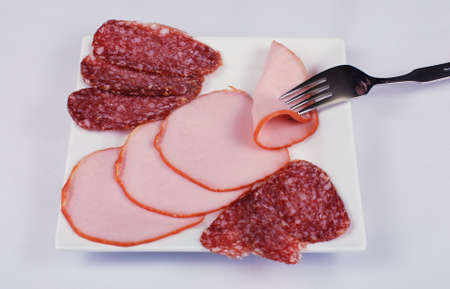 Chopped ham, sausage on plate