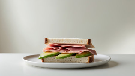 AI Generated. A sandwich with ham and avocado on a white plate
