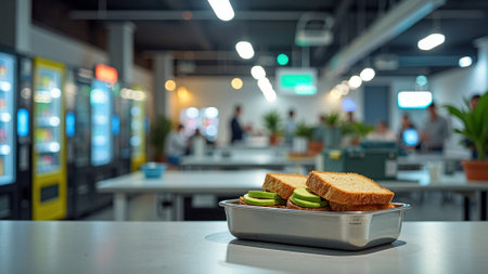 Fresh sandwich with avocado in modern office canteen. That the image is generated using AI.