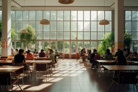 The Vibrant Buzz of People on Cafeteria: A Captivating Daytime Scene at 3:2 Ratio