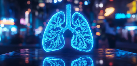 Detailed representation of human lungs illuminated in a smoky atmosphere, emphasizing their vital role in respiration and overall health. The image showcases clarity and anatomical precision, perfect for educational or healthcare-related projects.