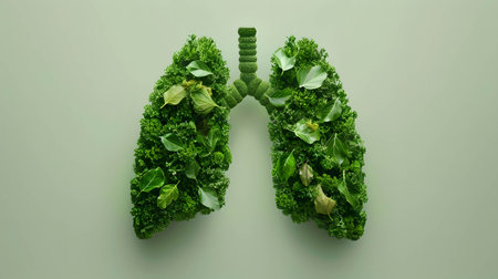 Breathing in clean, fresh air is essential for maintaining healthy lungs, human lungs made of fresh green leaves on green background