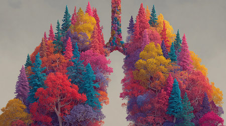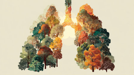 Conceptual illustration of lungs as tree branches, representing nature s link to human breathing