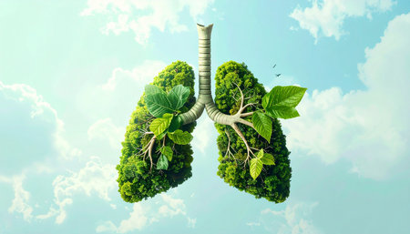 Conceptual illustration of lungs as tree like branches, symbolizing nature s link to human breathing