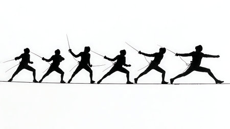 Fencing Second Intention and Strategy Silhouettes isolated on plain white background.