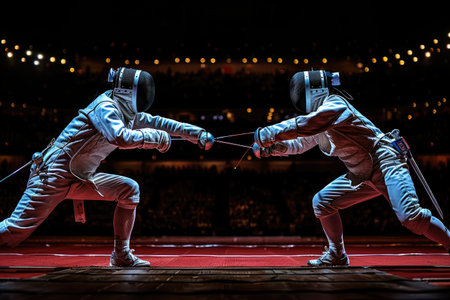 Fencing at an international fencing event in Milan.