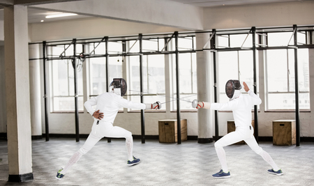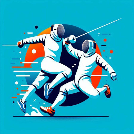 Fencing duel. Fencing sport vector illustration. Sport background.