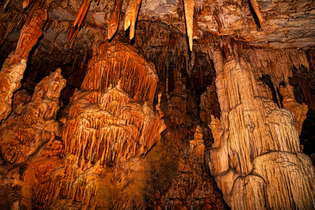 Stalactites and Stalagmites in Luray Caverns, Virginia, USA