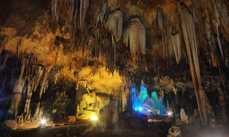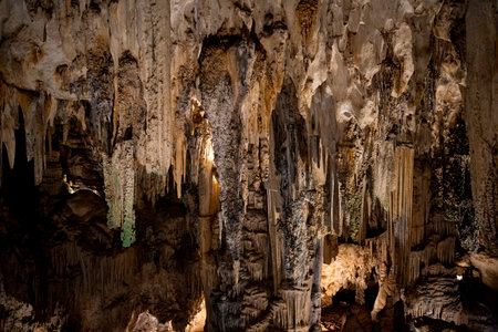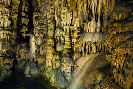 With stalagmites and stalactites cave under a mountain in Valporquero, Spain