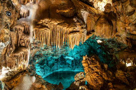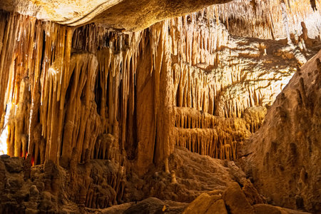 Spectacular Stalactite Formations in a Cave in Mallorca, Balearic Islands, Spain