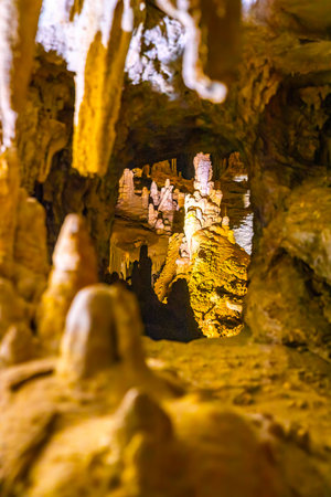 Stalagmites and stalactites inside the cave of Baradine near the city of Porec in Croatia