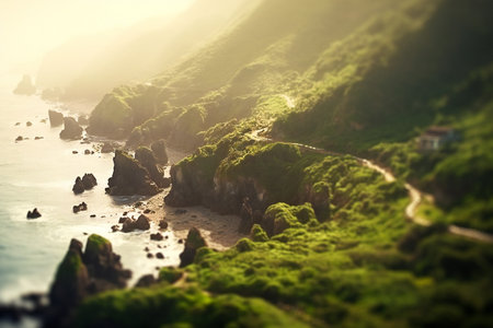 AI Generated. Scenic Coastal Route with Breathtaking Ocean Views and Rocky Cliffs