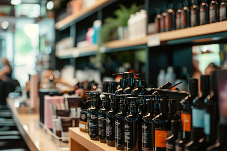 A Store Filled With an Assortment of Alcohol Bottles, An array of hair products and styling tools in a busy salon, AI Generated