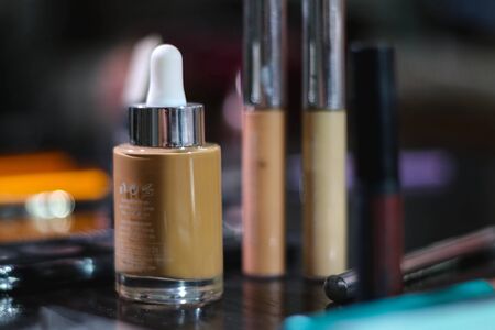 mockup of beauty fashion cosmetic makeup bottle serum dropper product with skincare healthcare product concept on background