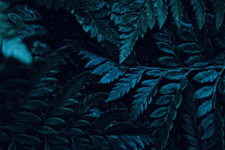 Blue plant leaves at night as surreal botanical background, minimal design backdrop