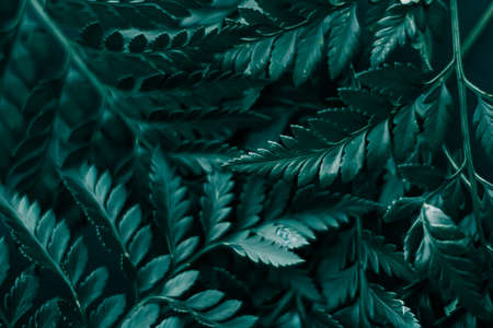 Deep faded green leaves background. Creative layout. Toned image filter. Black and green.