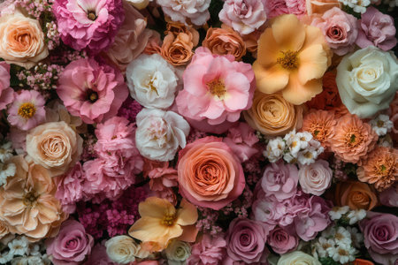 Vibrant floral background with various colorful flowers, ideal for nature themed designs and seasonal projects, featuring numerous roses and blossoms