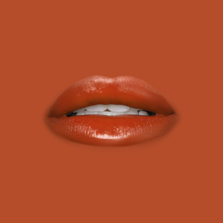Woman's lips against background matching color of her lipstick. Banner design with space for text
