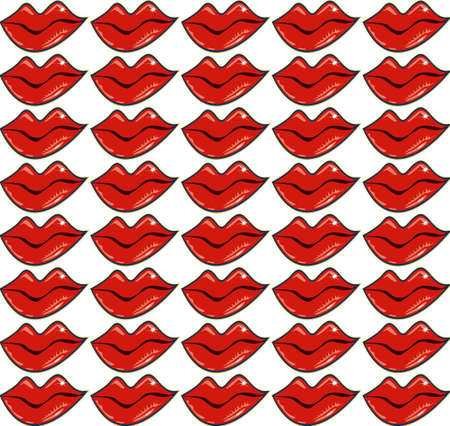 Lipstick kisses seamless pattern. Colors lips prints on white. Sexy wet lip make-up. Perfect for Valentine's Day, textile, wallpapers, web page backgrounds, packaging materials. Vector ilustration