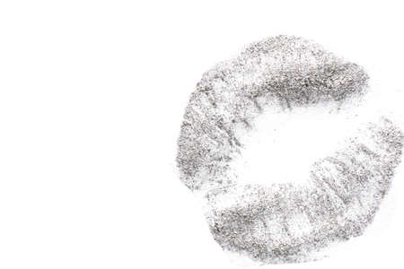 A trace of a kiss of women's lips red lipstick on white paper or an isolated background.