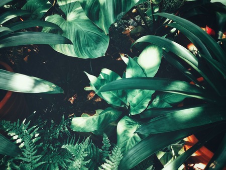 Green tropical garden plants close-up background.