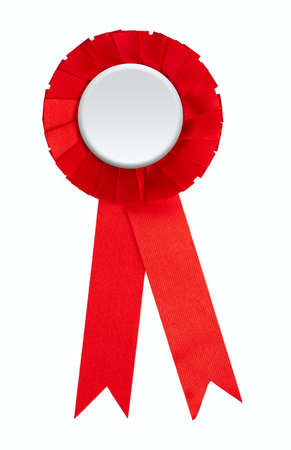 2nd place winners rosette in red with gold text made of pleated ribbon to be awarded to the runner up in a competition, close up view