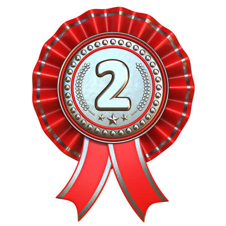 Silver medal for second place with red ribbons 3D render illustration isolated on white background