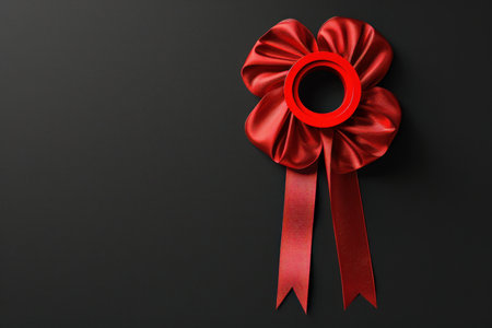 Red ribbon with circular center lying on dark background, bringing awareness to hiv aids