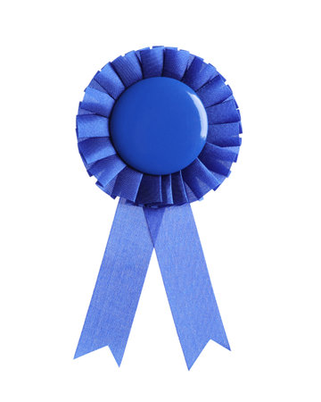 Blue award ribbon isolated on white background. 3d render. Image contains clipping path.