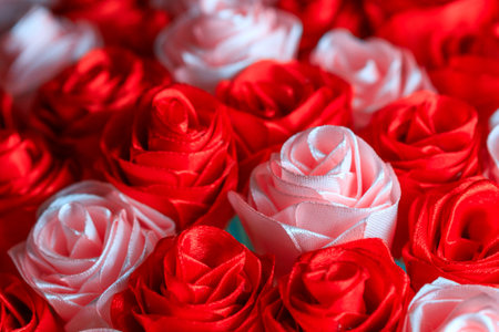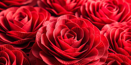 Close-up Red Paper Flowers, Detailed Texture, Craft Background