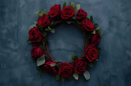 Background with a floral pattern of natural fresh red roses. view from above. A festive banner.