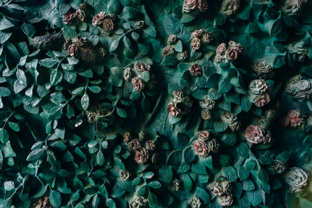 Green ivy background with low light.