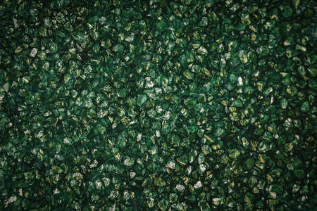 Texture of green moss and leaves on stone wall background