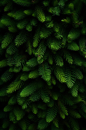 Fir branches green needle abstract background Christmas texture. Vertical composition.