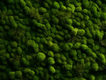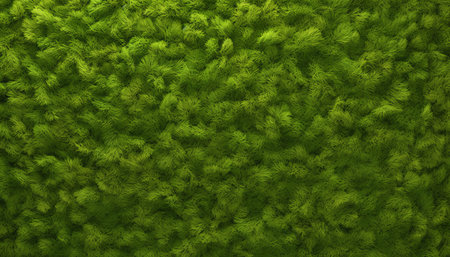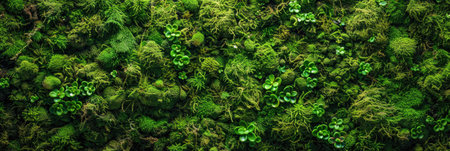 Detailed close-up of lush green moss and foliage, creating a dense and vibrant natural texture. Ideal for backgrounds, nature themes, and botanical designs.
